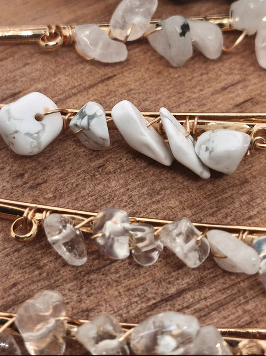 7 barrettes en acier inoxydable et chips de pierres naturelles