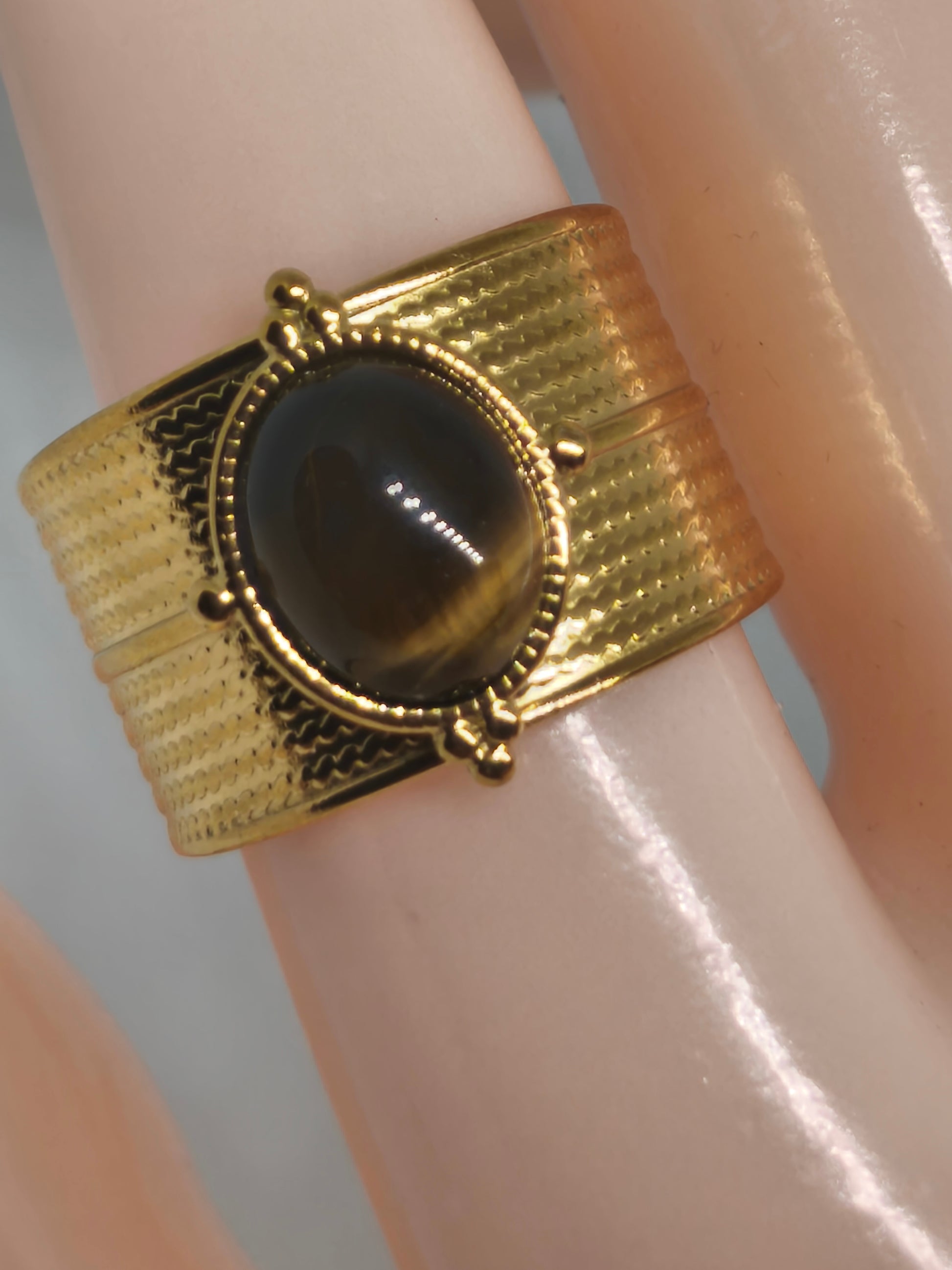 Bague neuve en acier inoxydable et oeil de tigre 18mm