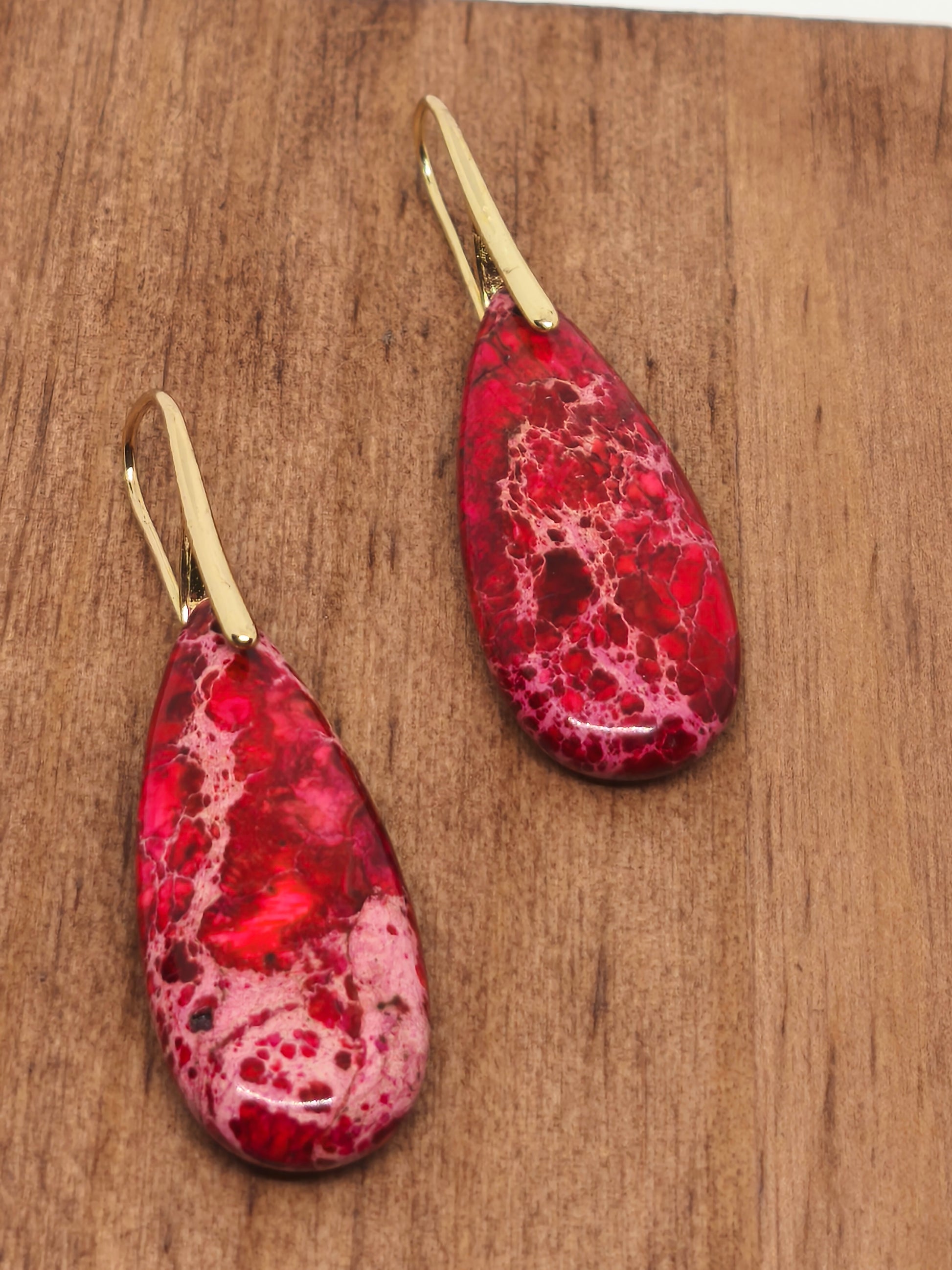 Boucles d'oreilles en jaspe impérial rouge