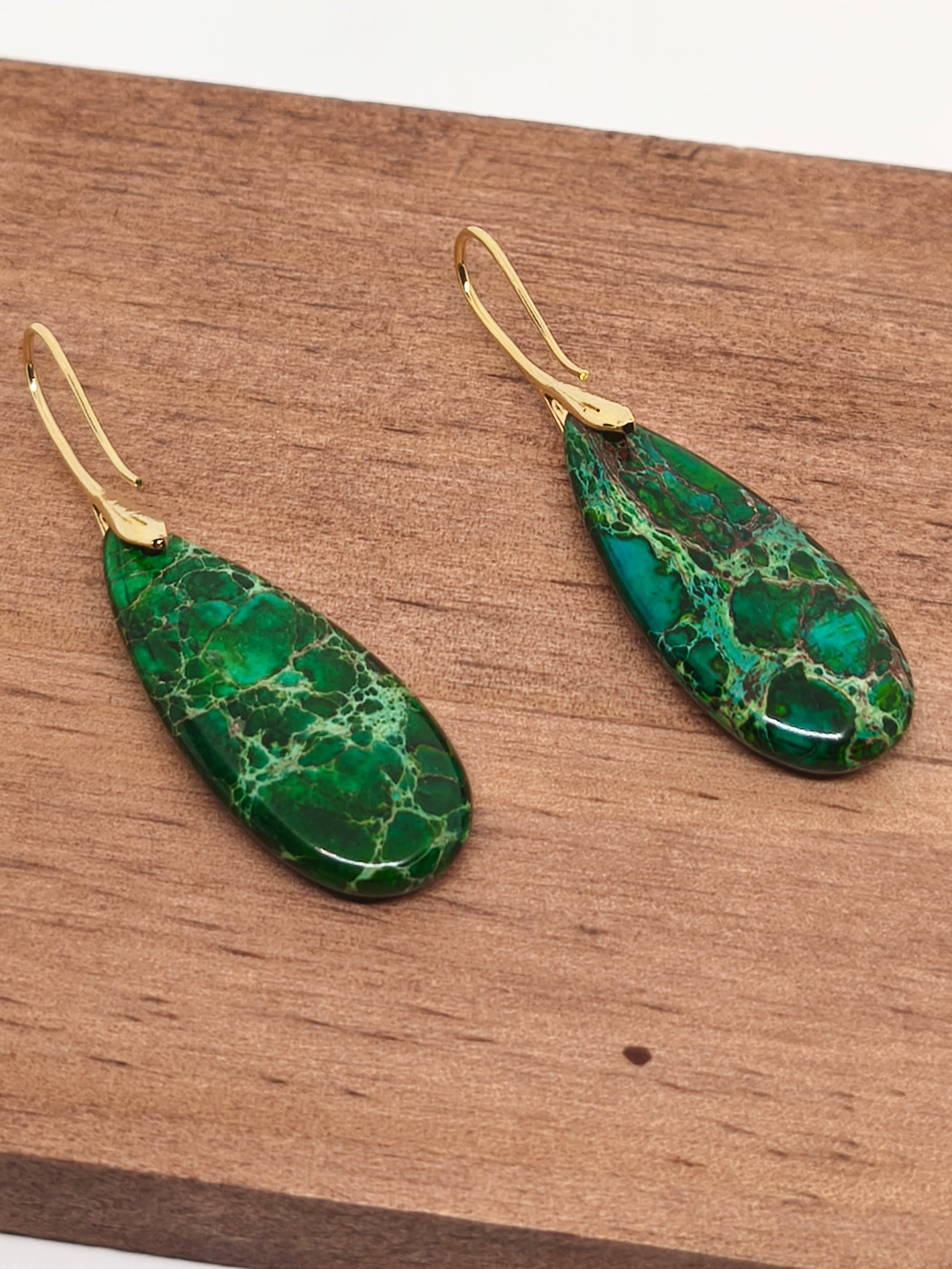 Boucles d'oreilles en jaspe impérial vert