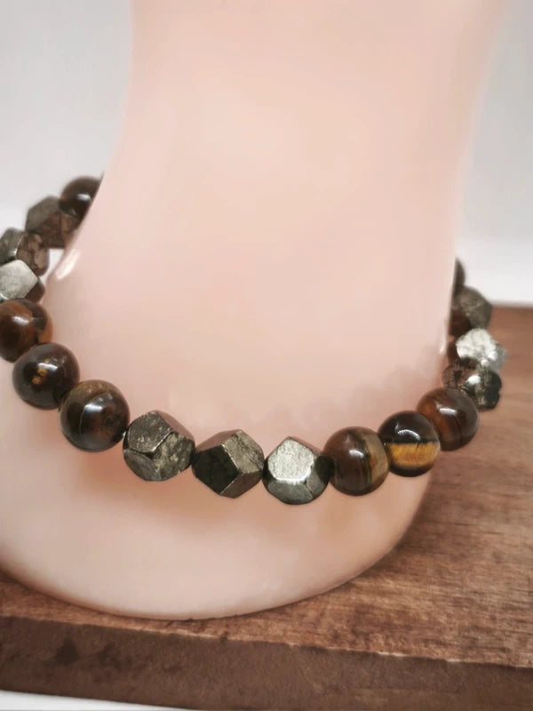 Bracelet oeil de tigre et pyrite 8mm