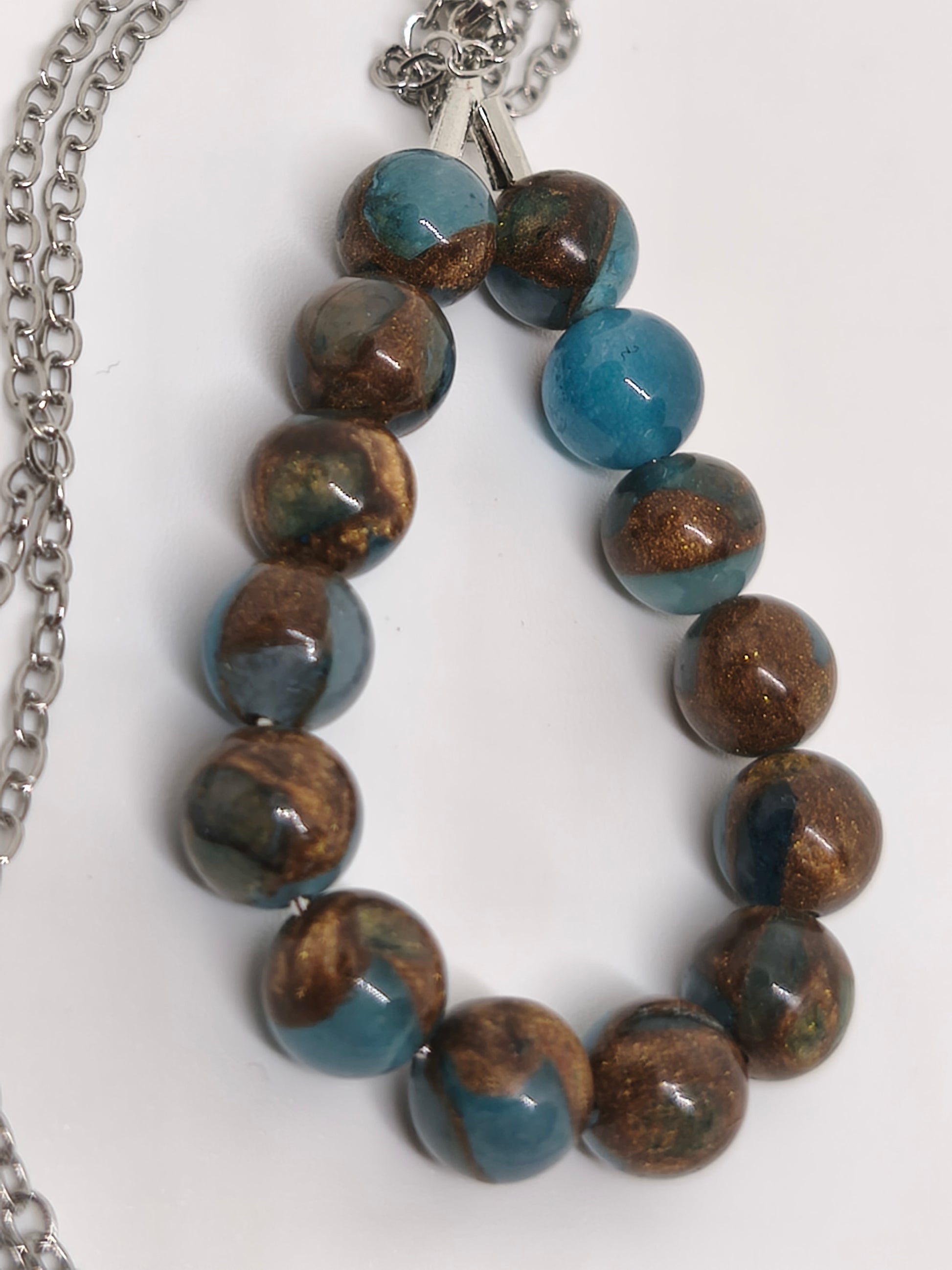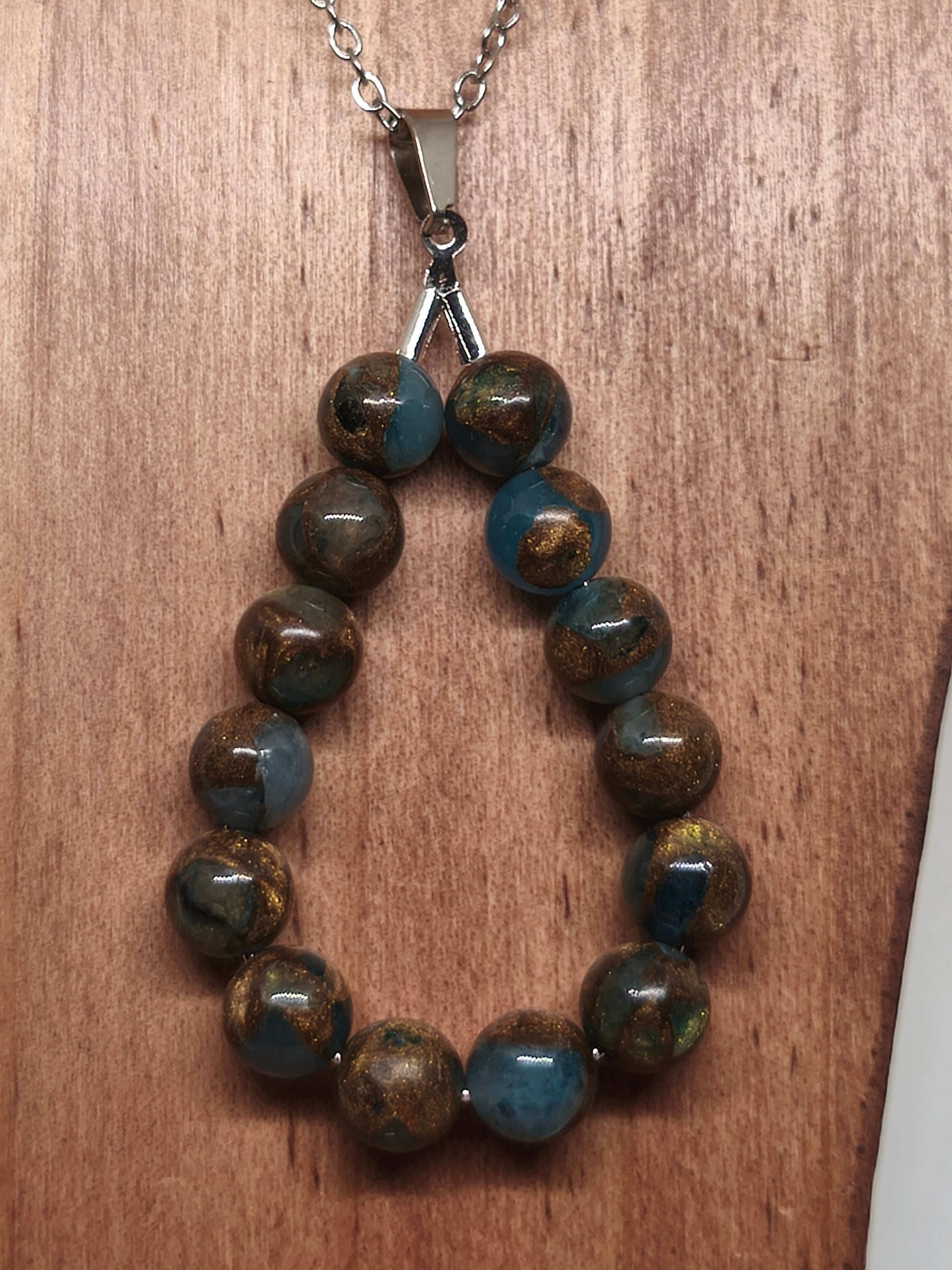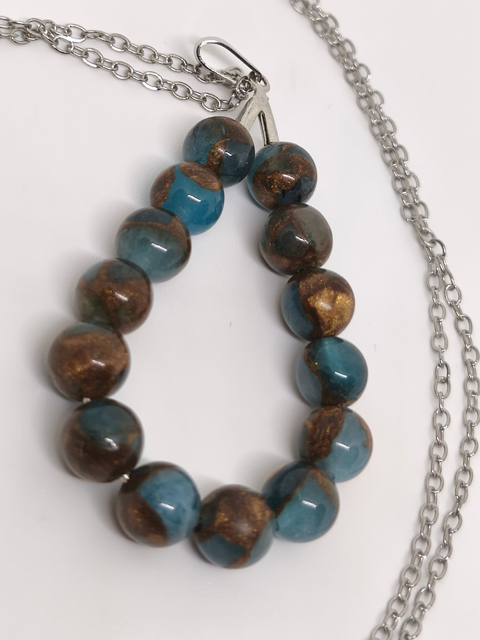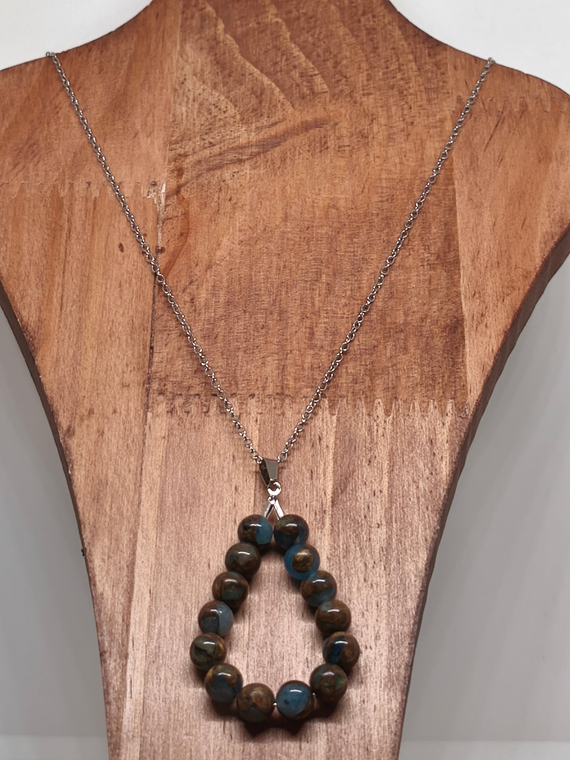 Collier en perles de 6mm de jaspe bleu lac cloisonné . Longueur totale de la chaîne en acier inoxydable 48cm, pendentif 5,3cm de longueur sur 2,8cm de largeur
