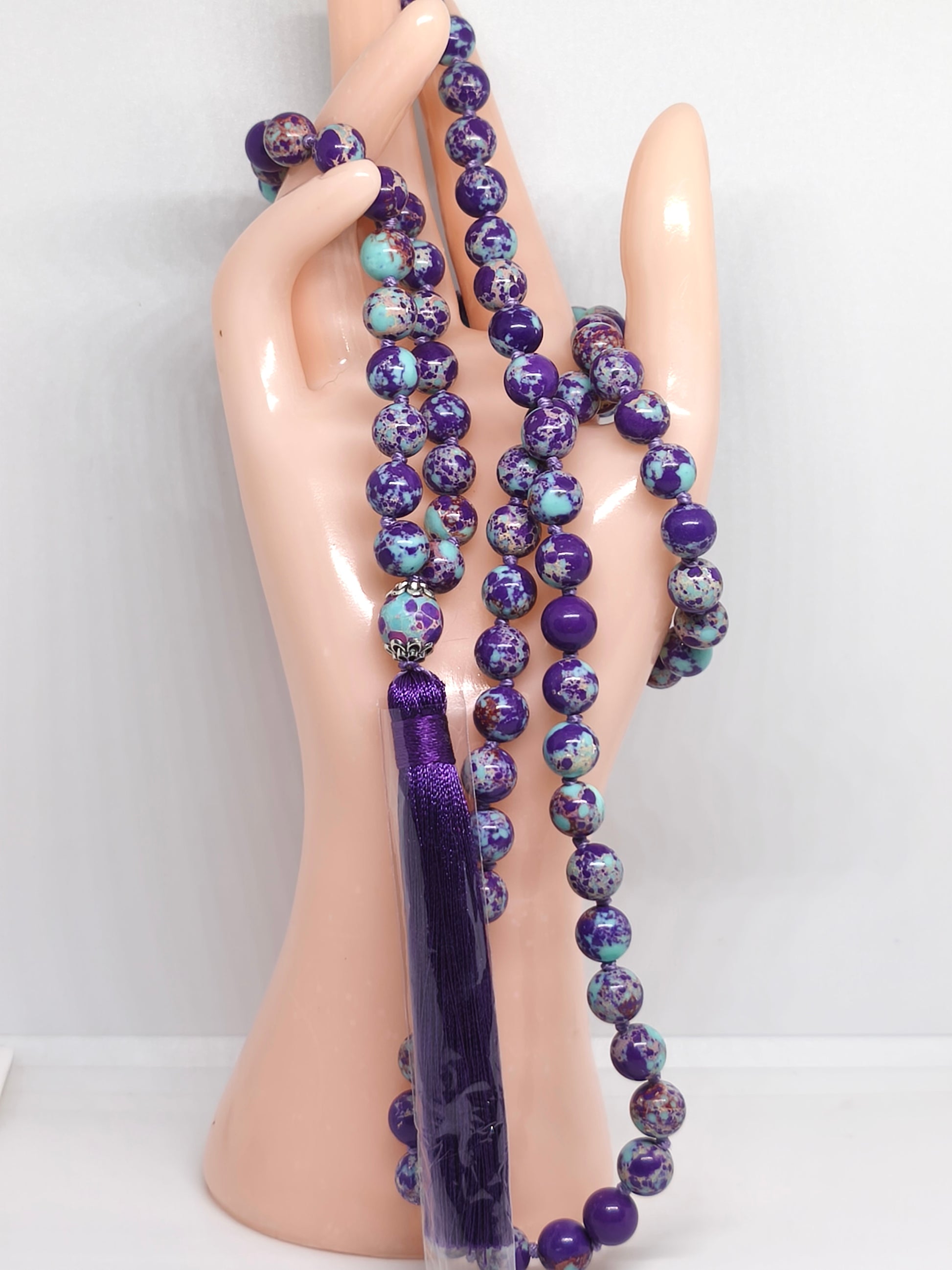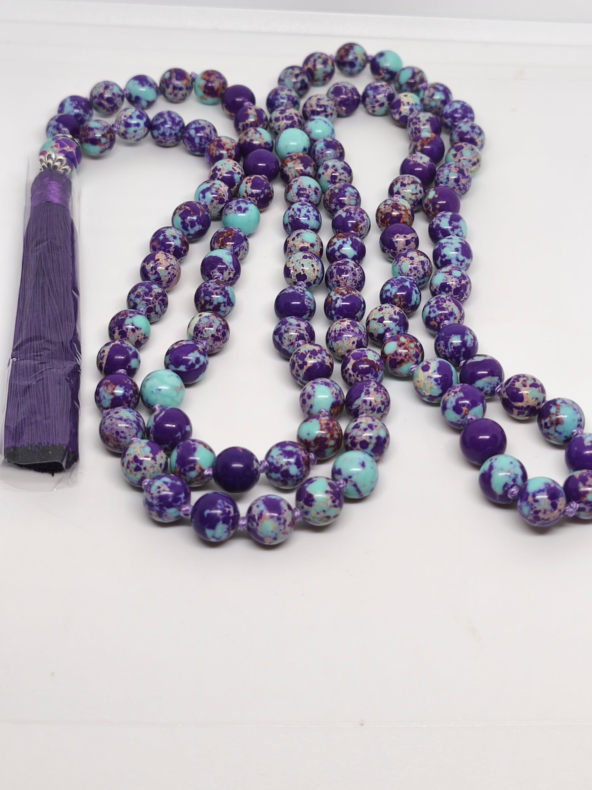 Collier Mala en perles de 8mm de calsilice . Longueur 60cm.