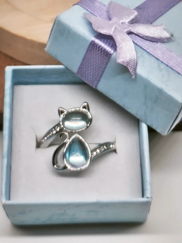Bague chat en acier inoxydable et cristal de roche