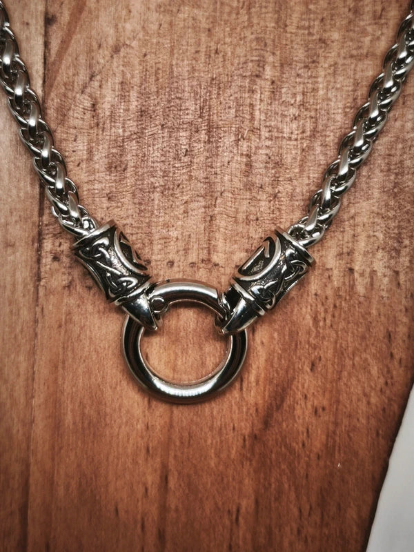 Collier celtique-viking en acier inoxydable. Chaîne épaisse, longueur totale sans l'anneau 60cm.