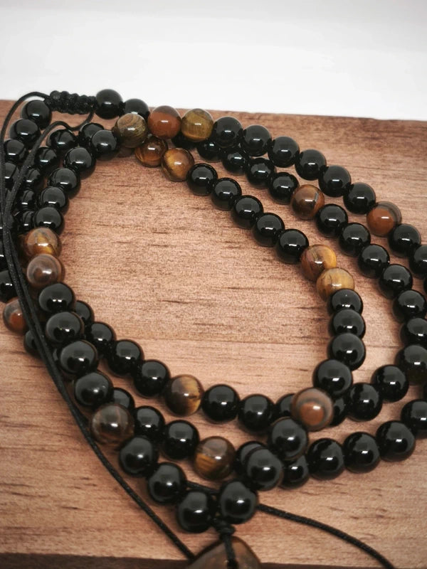 Collier Mala et pendentif en oeil de tigre