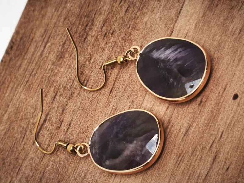 Boucles d'oreilles en améthyste. Longueur 4,5cm, largeur 1,8cm. Poids 8g les deux