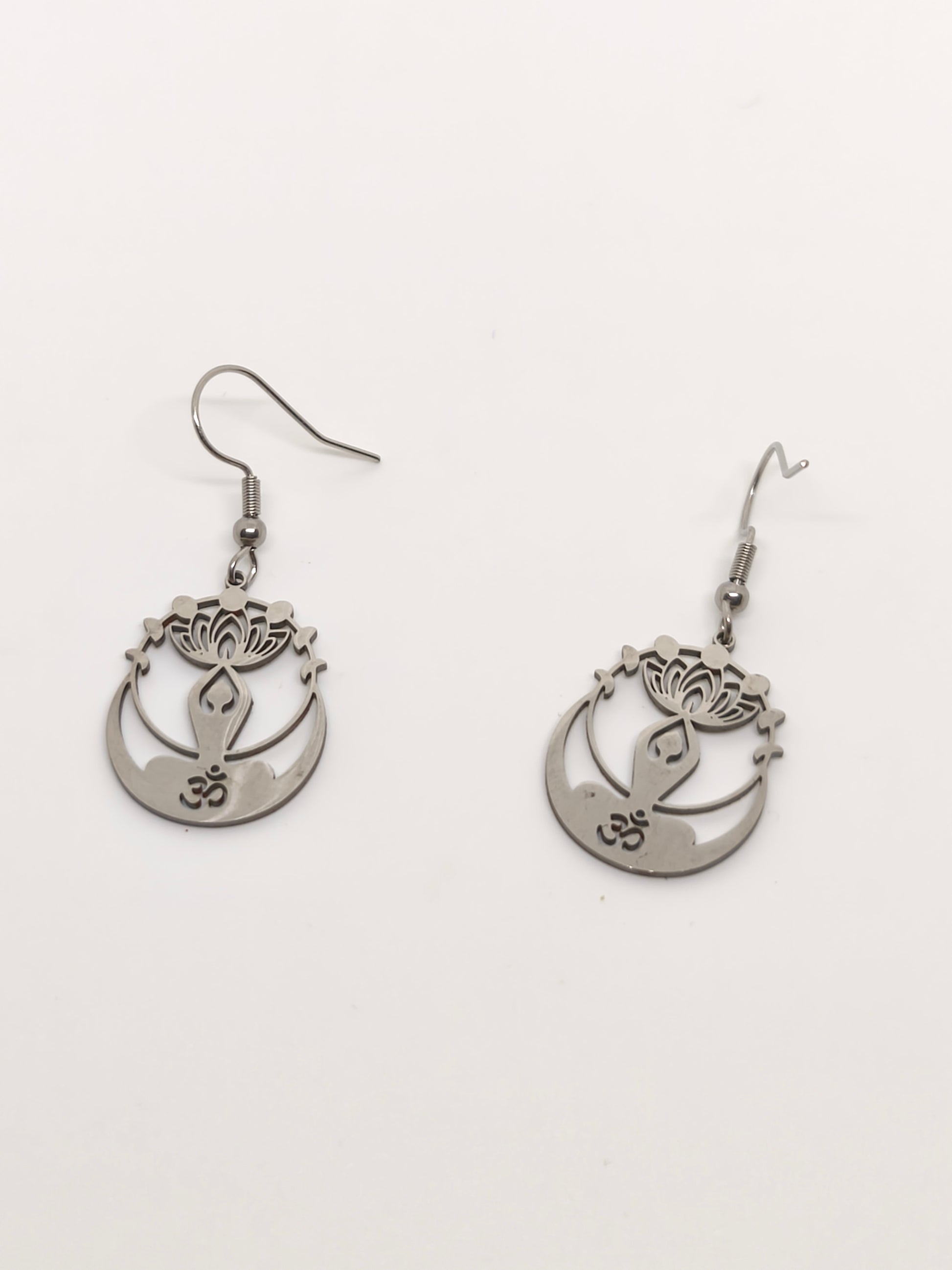 Boucles d'oreilles OM tibétain en acier inoxydable. Longueur 4cm, largeur 1,8cm