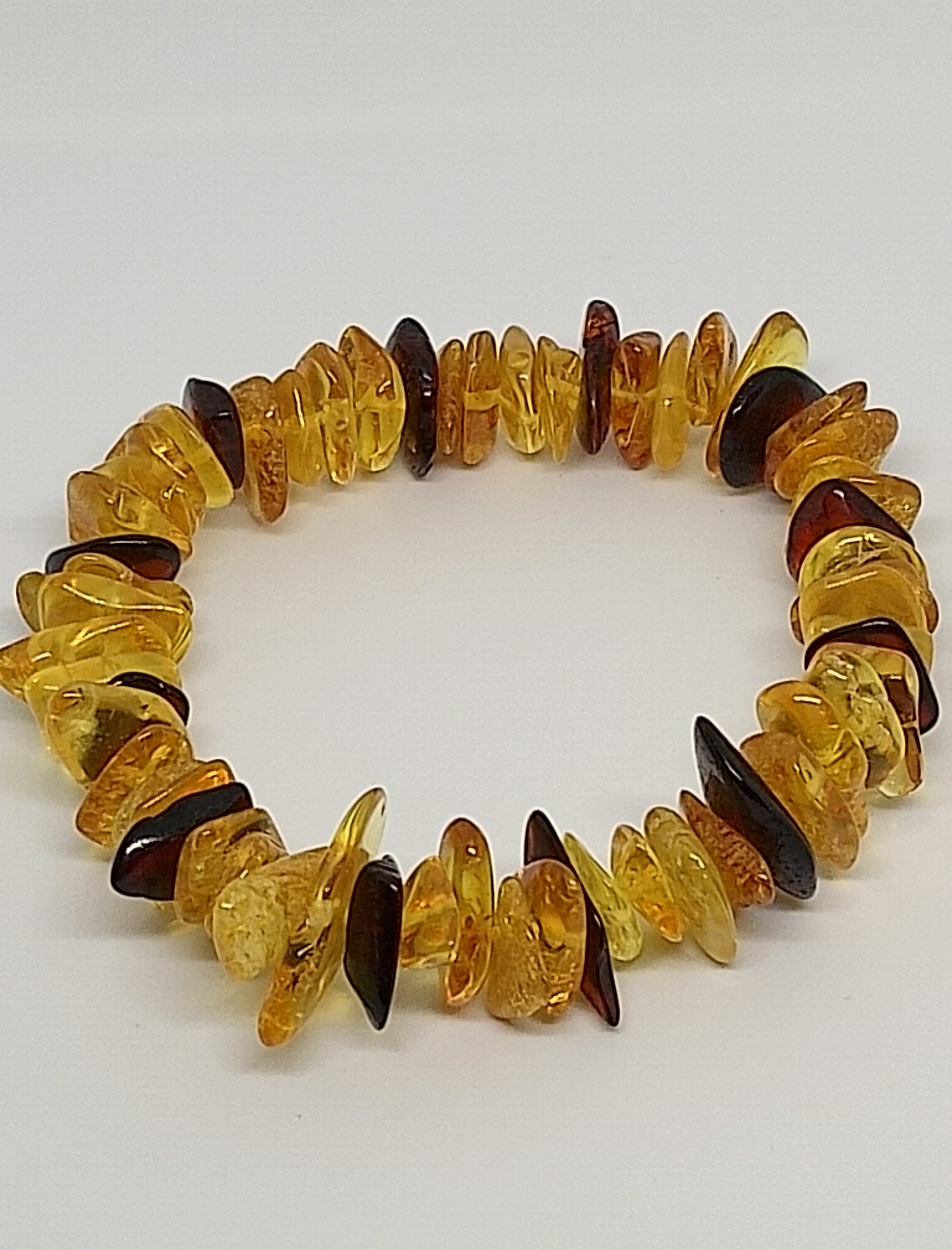 Bracelet en ambre naturelle. Largeur 1,5cm environ. Poignet 16-19cm. L’ambre est issue de la fossilisation de résines végétales. L'ambre n'est donc pas une pierre minérale . D'où la légèreté et l'aspect de la résine. C'est une pierre aux vertus apaisantes qui favorise la détente et la relaxation, idéale pour les personnes souvent stressées ou anxieuse