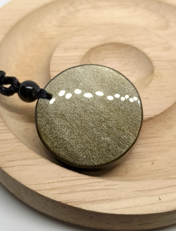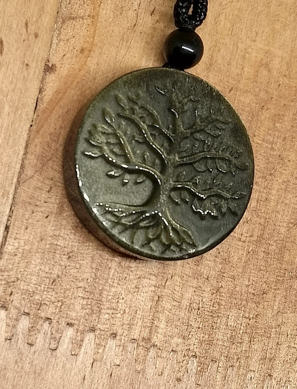 Collier arbre de vie en obsidienne dorée. Longueur ajustable par le cordon jusqu'à 38cm. Pendentif 3cm