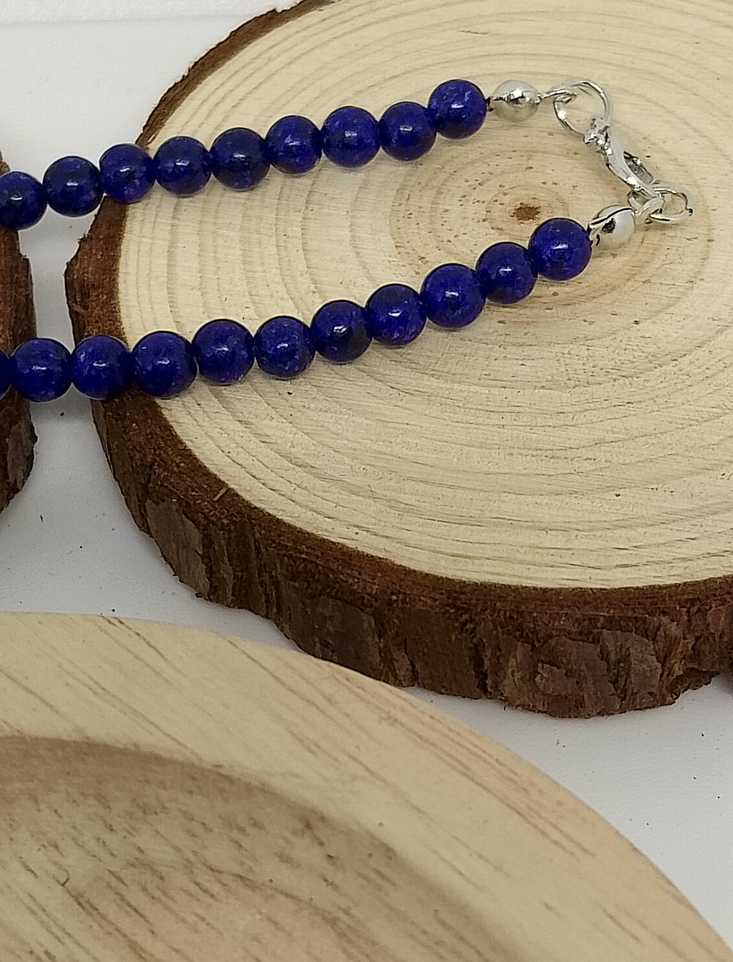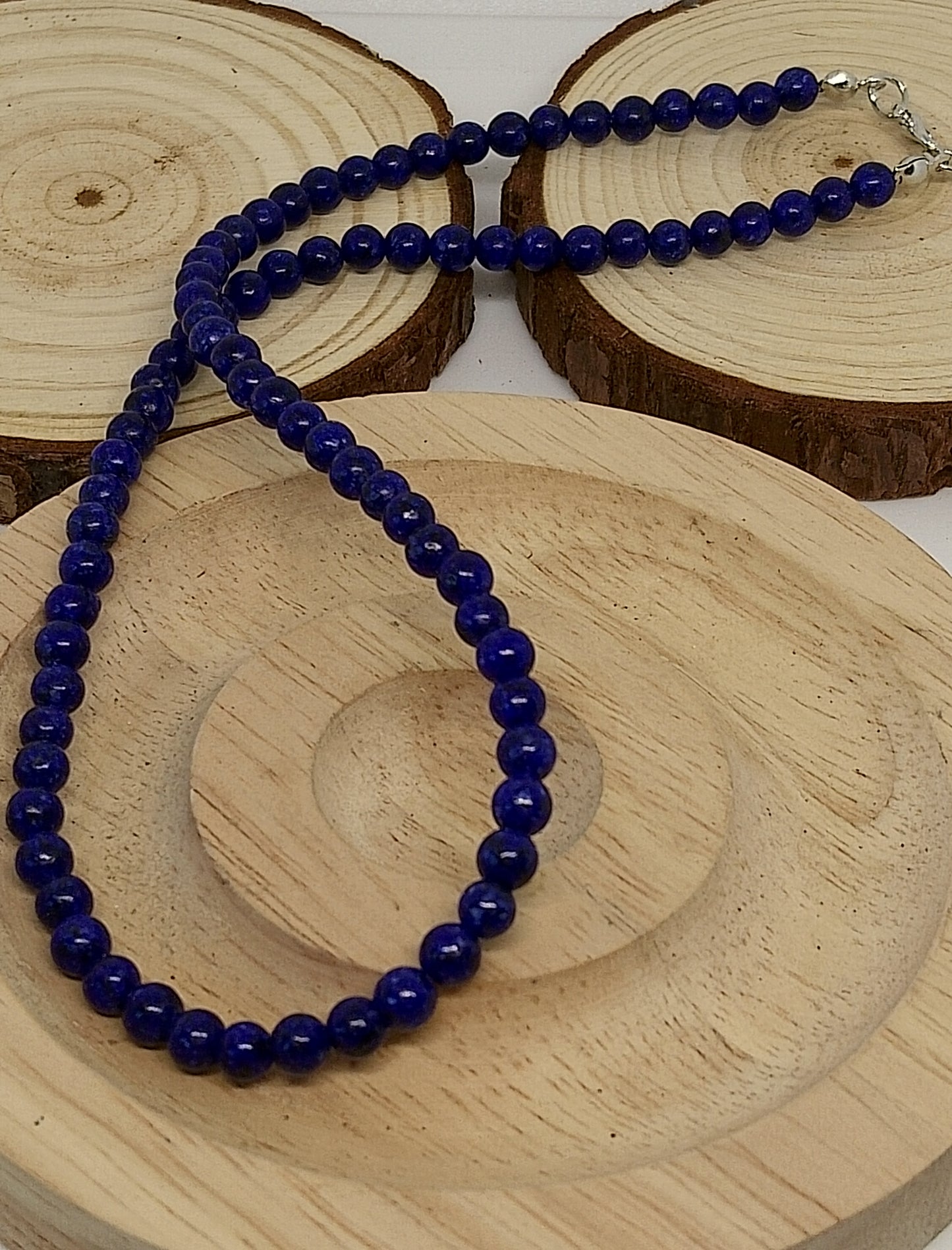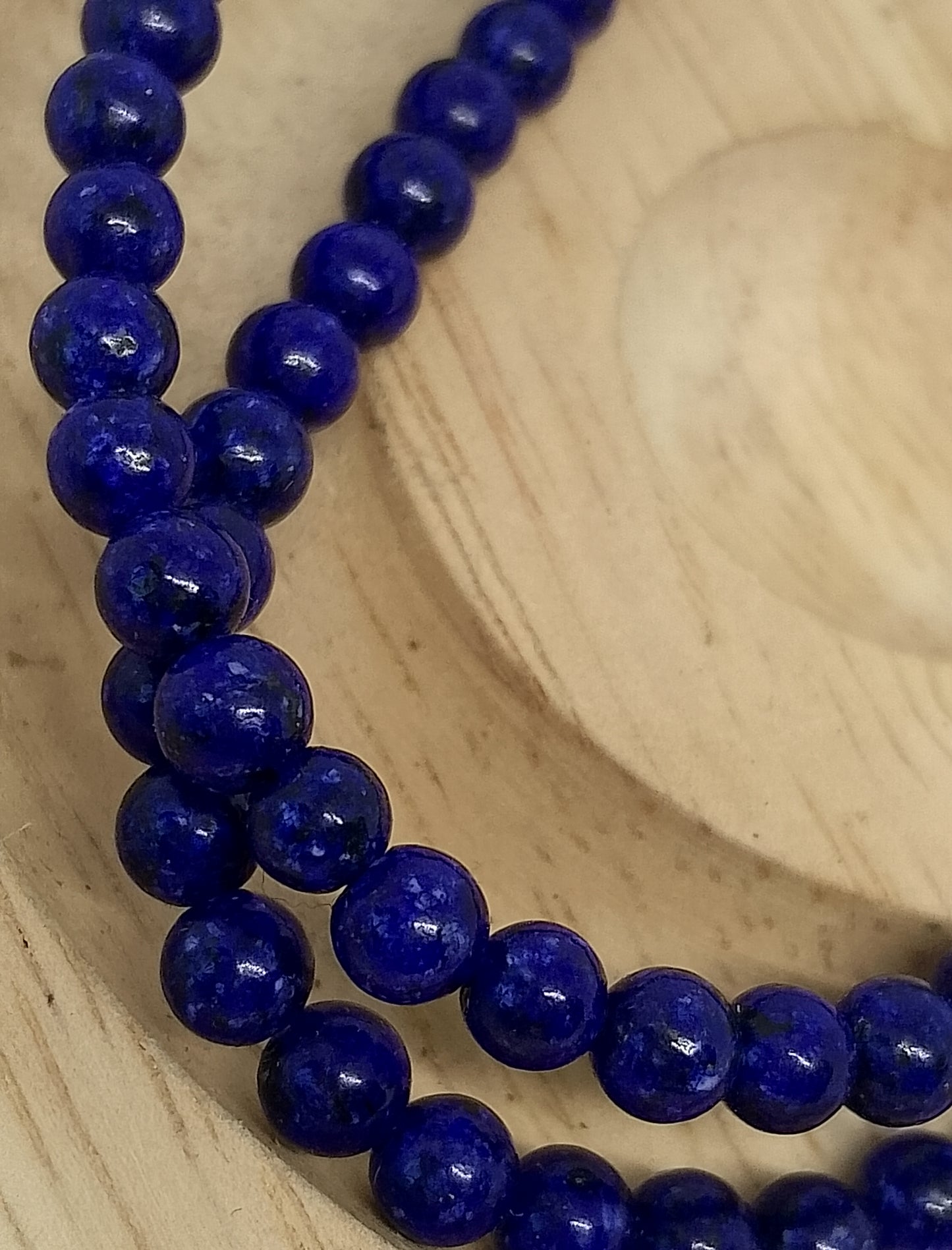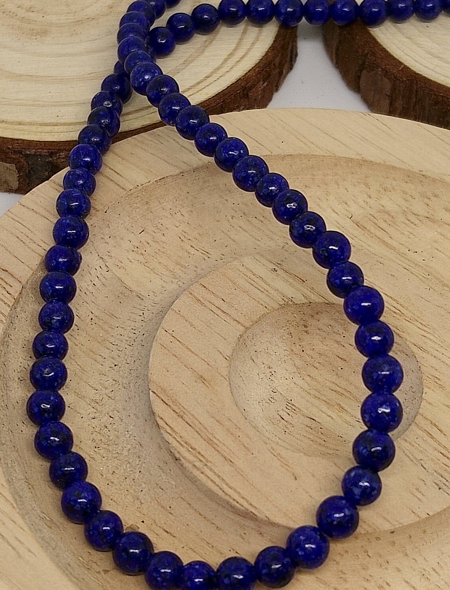 Collier ras de cou en perles de lapis lazuli 4mm. Longueur 29cm porté.