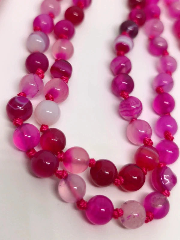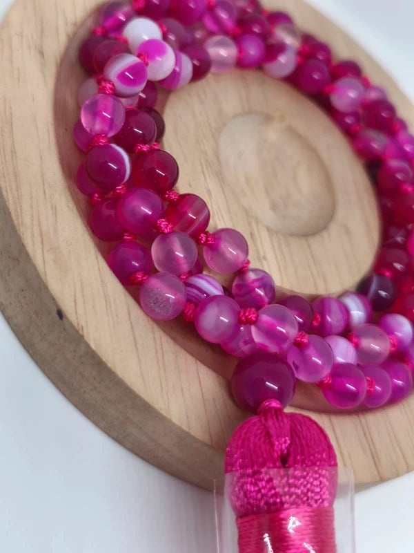 Collier Mala en agate rose 6mm