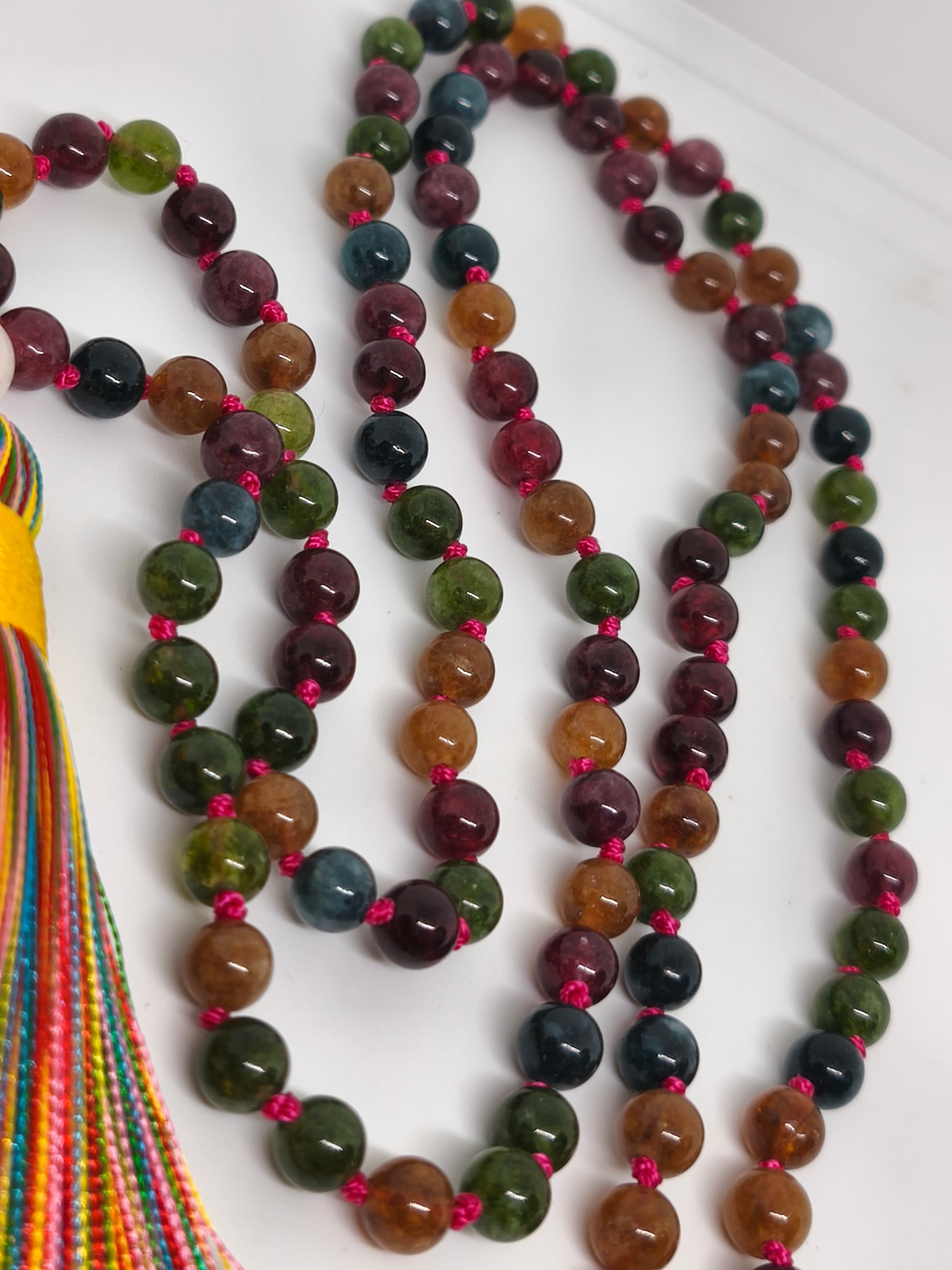Collier Mala en tourmaline multicolore 6mm