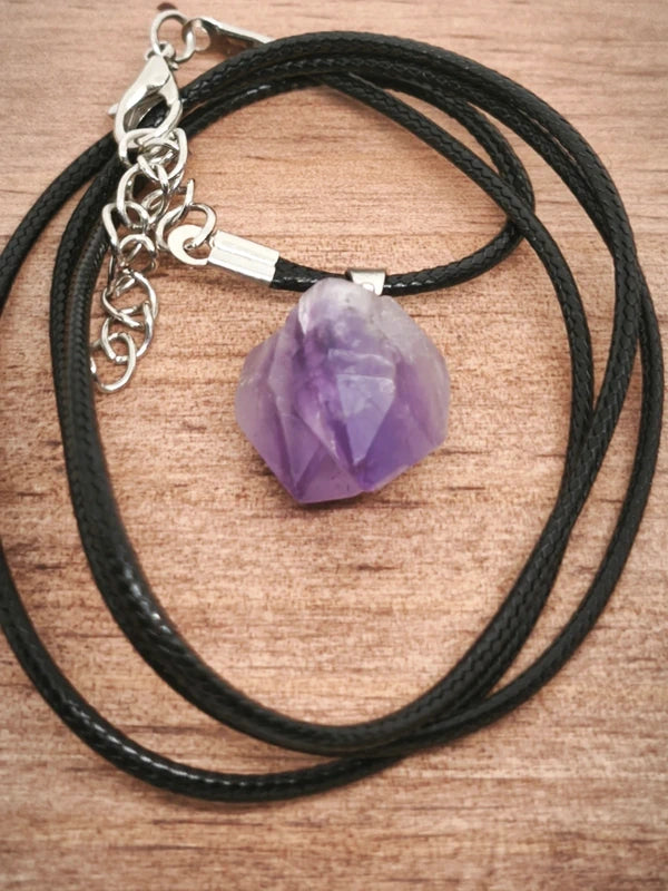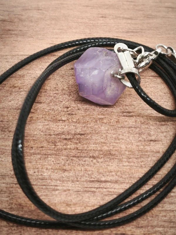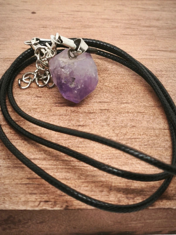 Ensemble en améthyste avec 1 pendentif offert en pierre brute avec cordon.
