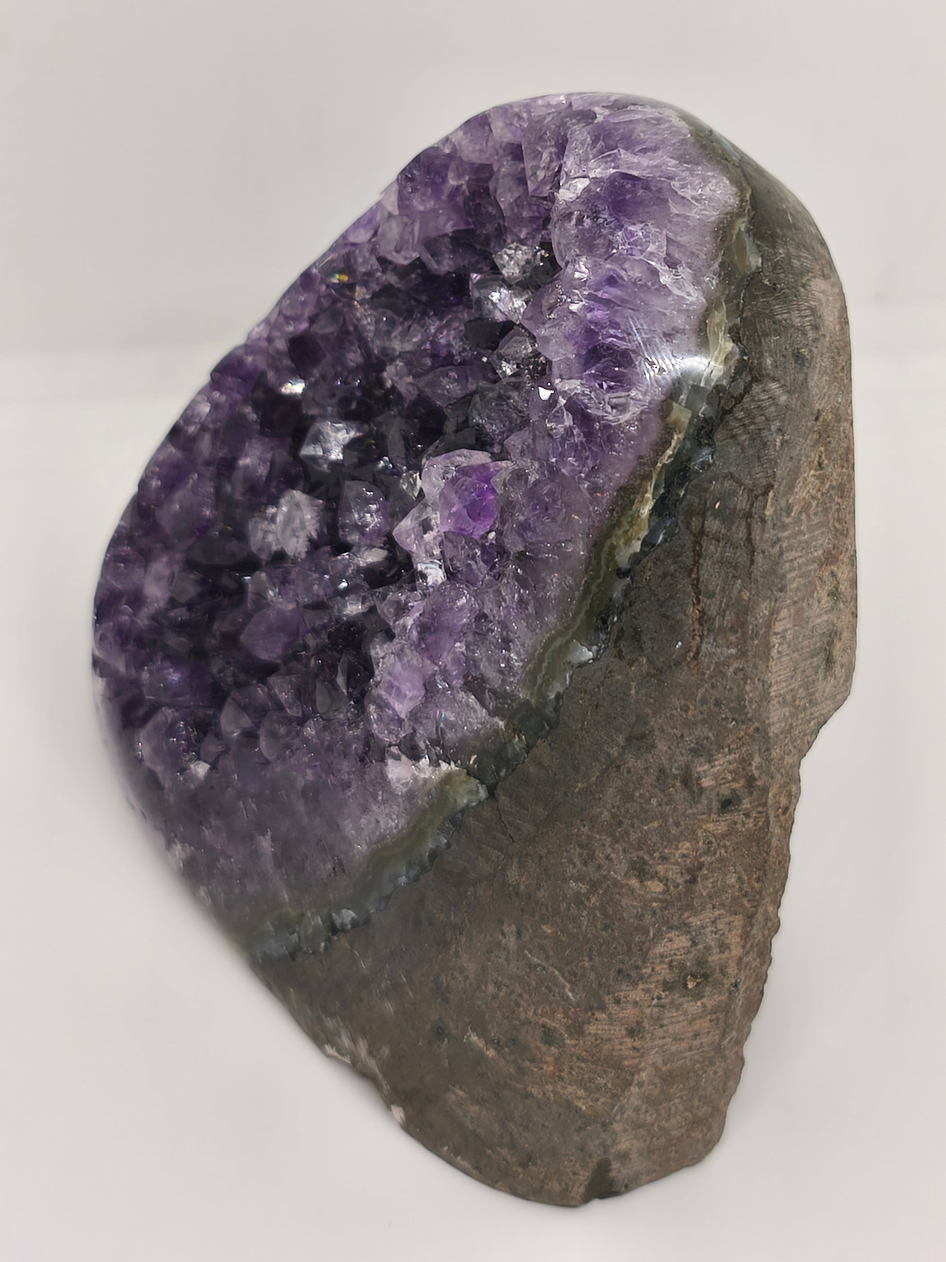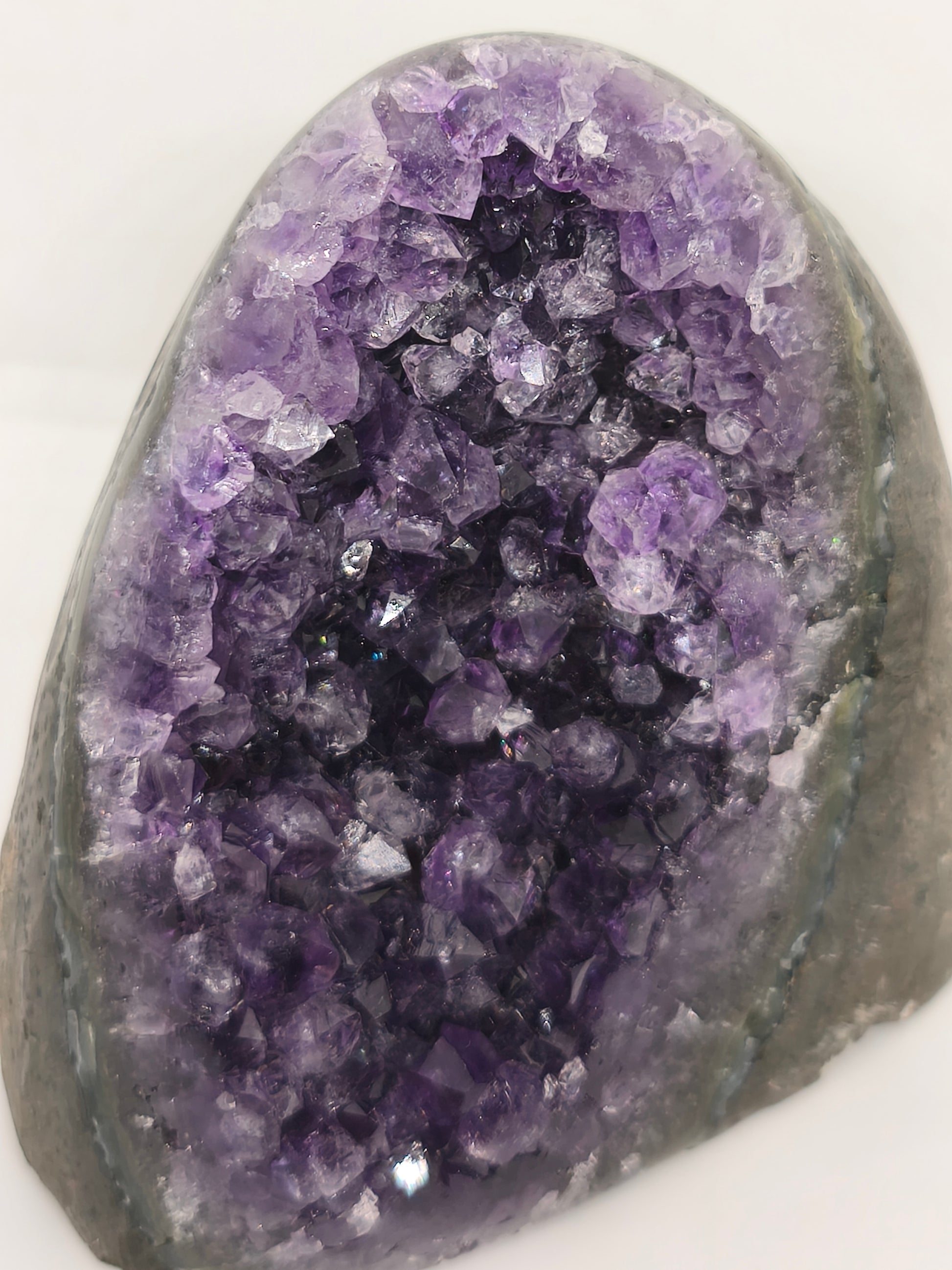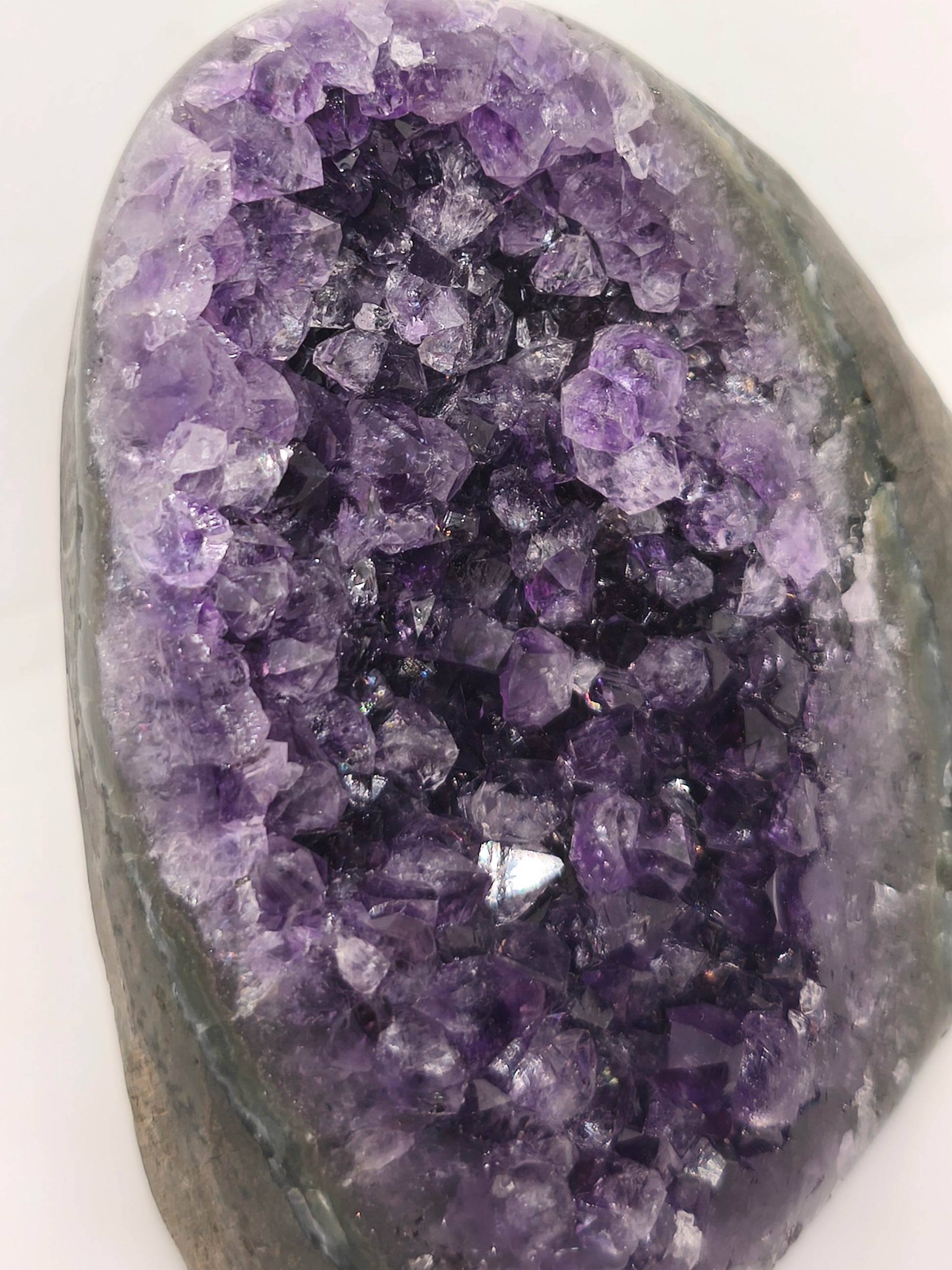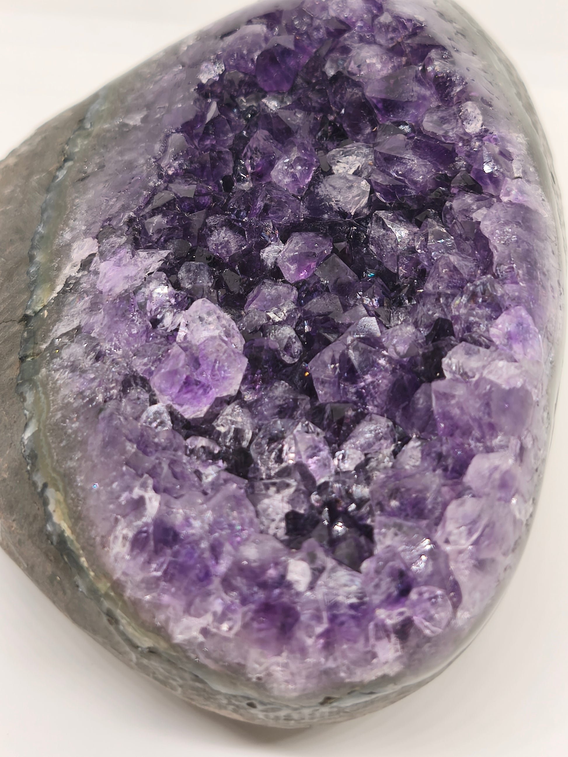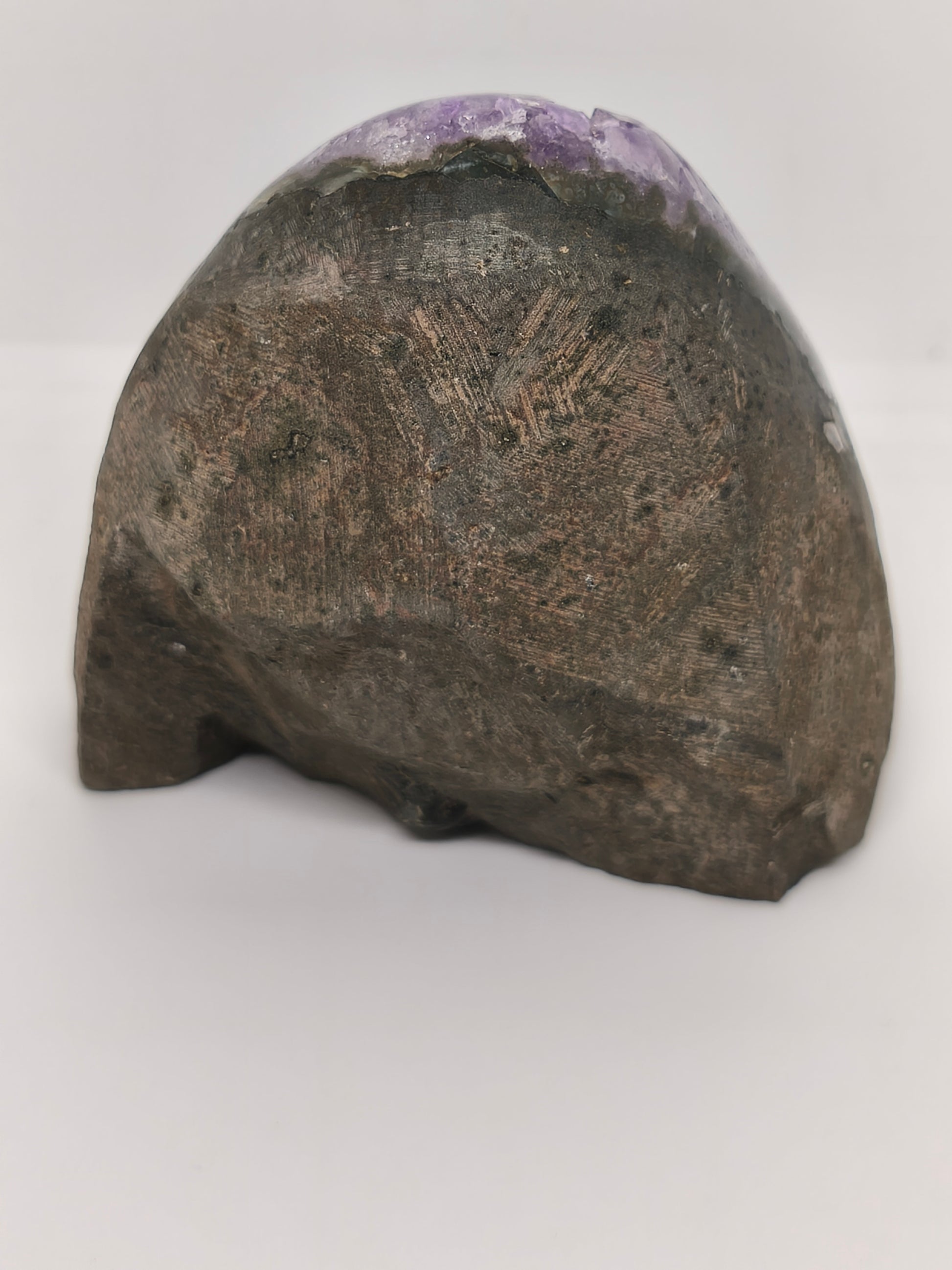 Géode d'améthyste du Brésil . Hauteur 9cm, largeur 9cm à la base , 8cm au milieu, profondeur environ 6cm à la base.